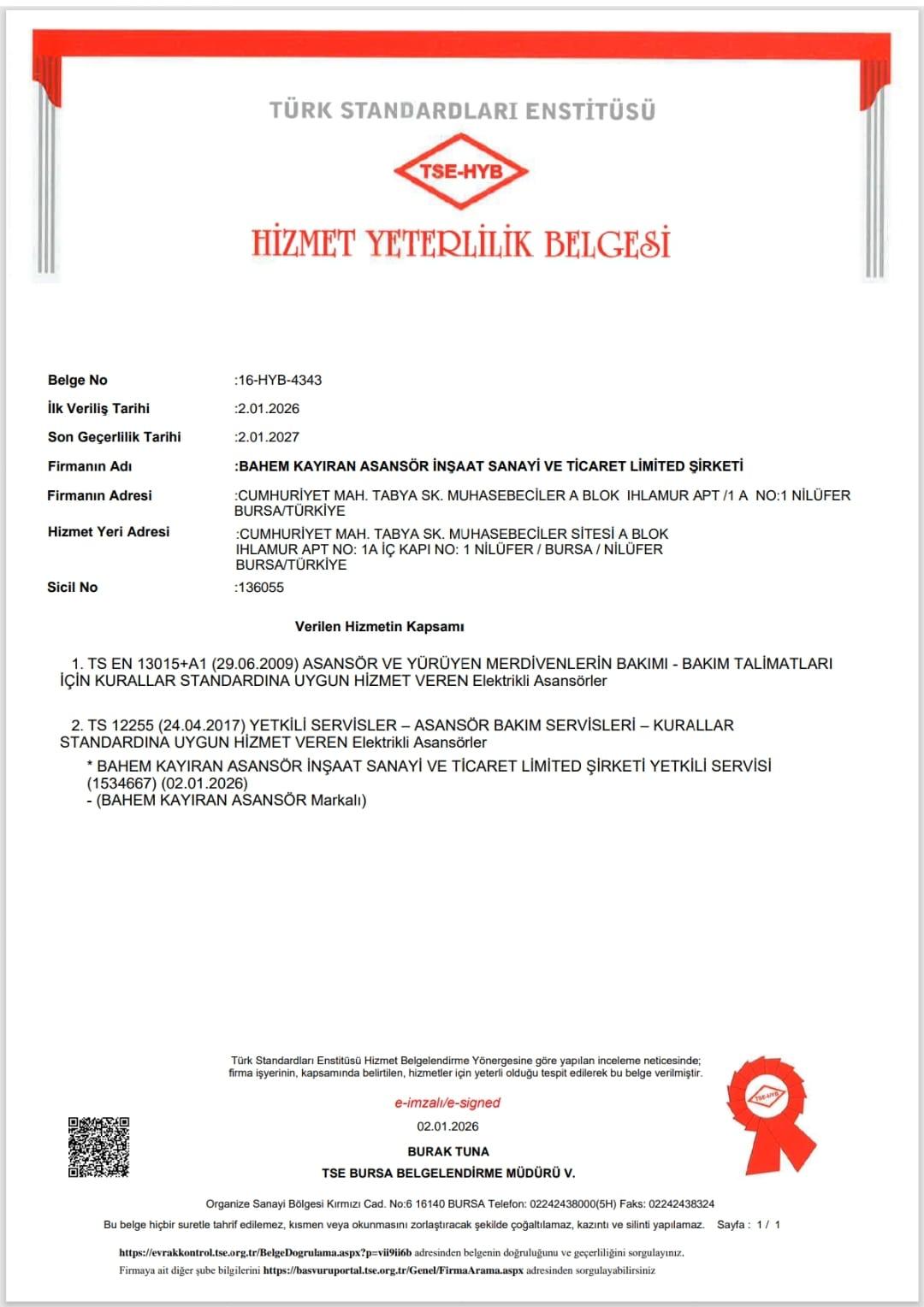 TSE Hizmet Yeterlilik Belgesi